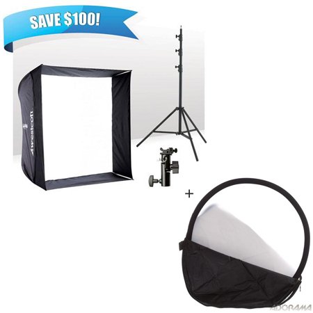 Westcott 28" Apollo Flash Kit #2331 with 8' Light Stand This complete portable kit allows you to take off-camera flash lighting to a whole new level. The 28" Apollo is built on an umbrella frames and sets up in seconds. No adapter rings are required. The Apollo is an ideal main or fill light providing 104 degrees of wraparound lighting. The included adjustable shoe mount fits a variety of off-camera flashes and allows the Apollo to be tilted. It's made of all metal construction. The included 8' light stand is durable and lightweight. Perfect for travel. Flashpoint 32" 5-in-1 Collapsible Disc Reflector The Collapsible Reflectors are perfect for reducing contrast, warming skin tones, eliminating shadows or just softening light. They can be hand held or attached to a light stand with the extendable Reflector Holder. The 32" size is generally used in 3/4 adult portrait photography, full length child photography or just opening larger shadows. Outdoor portraits of couples under trees could also be complimented from reflectors of this size.